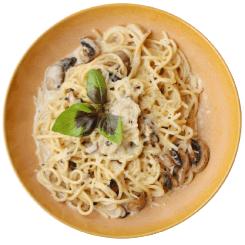 Jackfruit, champignons, tomatensaus en verse basilicum